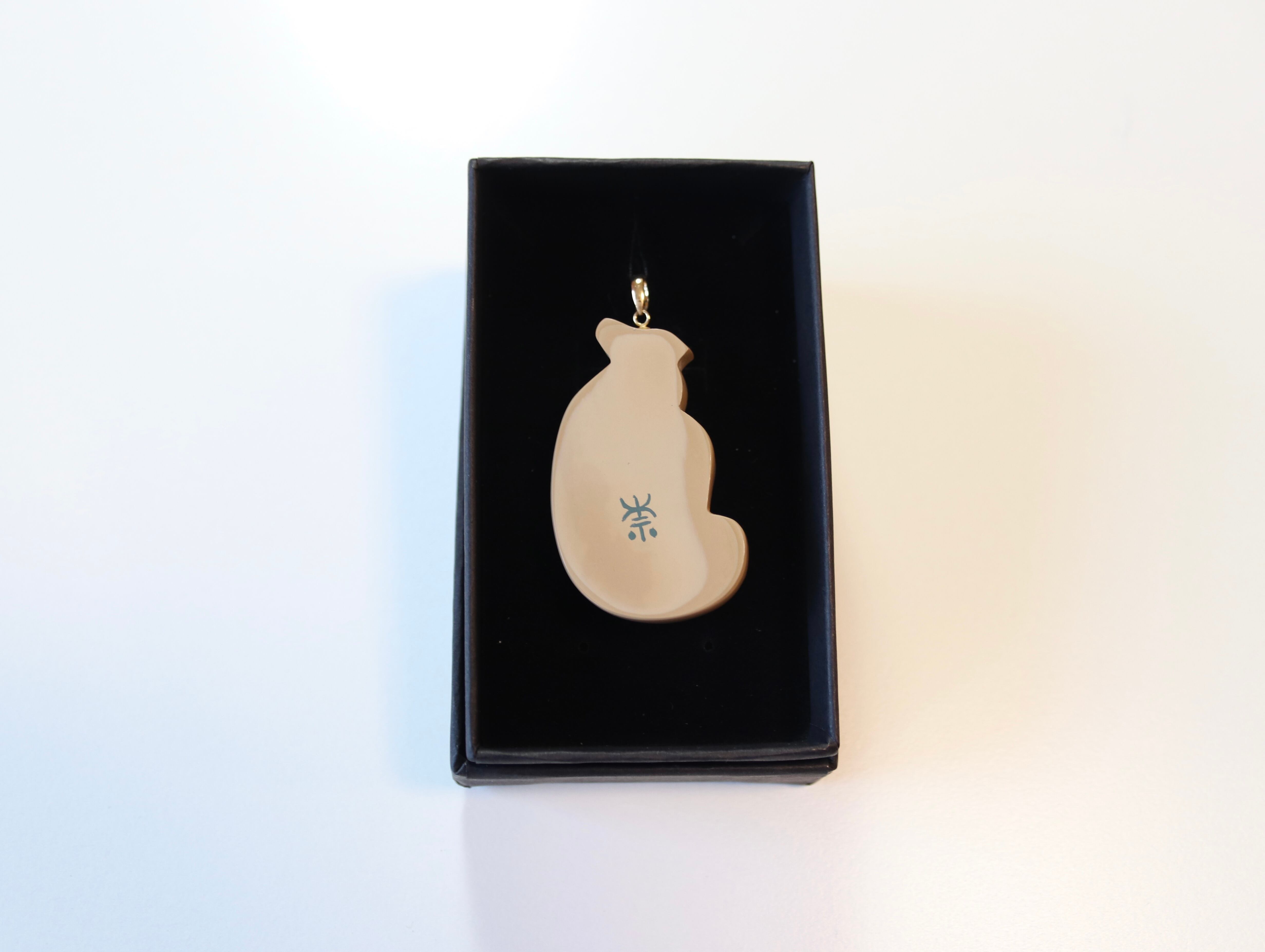 ガラス板に5ミリ程の厚さになるまで白漆を100回以上塗り重ねた後、漆のみを外したもの(堆漆板)に彫りを施して作った漆100%素材のペンダントトップです。白漆が温かみのある柔らかな印象です。